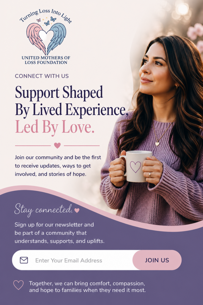 The United Mothers of Loss Foundation (UMLF) is a heart-led, trauma-informed 501(c)(3) nonprofit dedicated to supporting families after miscarriage, stillbirth, infant loss, recurrent loss, and the loss of multiples. We exist because pregnancy and infant loss changes a family forever, and we believe every mother deserves support, understanding, and compassion.